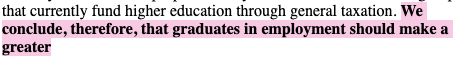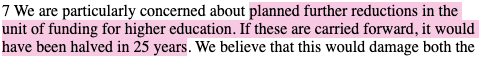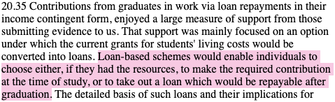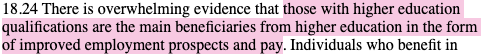 And that, therefore, with their ‘improved employment prospects and pay’, students, during this period of receding public higher-education funding, ‘should make a greater contribution to the costs’.