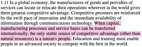 This is, I think, something of a smoking gun. ‘To be a successful nation in a competitive world … we must invest in education to develop our greatest resource: our people.’ The report goes on to be a little more explicit: