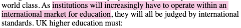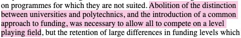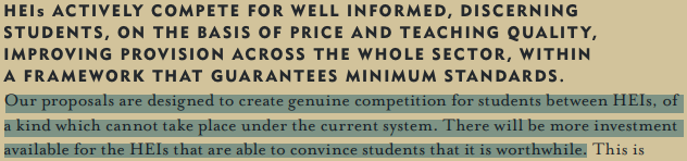 The ‘92 expansion of the university sector – the incorporation of polytechnics – is framed by the report, in this light, as providing a ‘level playing field’ on which these corporate-universities could ‘compete for students’: