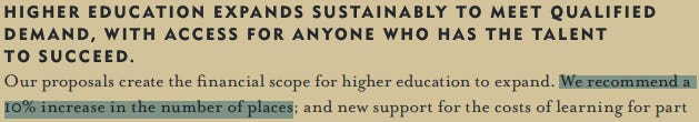 The review first recommends a 10% increase in student place provision across the sector: