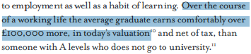 The Browne Review includes all of what are, by this point, the greatest hits. Higher education is necessary because it enhances individuals’ employability; higher education is necessary because it increases individuals’ lifetime salaries; higher education is necessary because it promotes GDP growth: