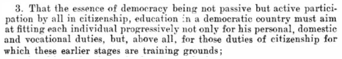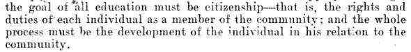 ‘The goal of all education must be citizenship’; ‘the essence of democracy [is] not passive but active participation by all in citizenship.’
