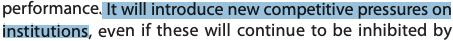 and 2) pressurising competition between universities: