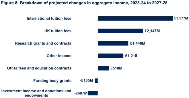 This means that, by design, the university sector has become increasingly reliant for its ‘financial stability’ upon student income (as ideologically espoused by the Browne Review). The 2025 OfS report indicates that the proportion of public funding will only continue to shrink, and the proportion of private tuition ‘income’ will only grow:42