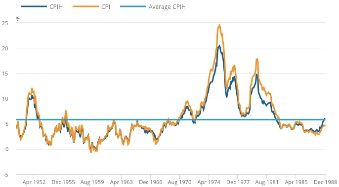 https://www.ons.gov.uk/economy/inflationandpriceindices/articles/consumerpriceinflationhistoricalestimatesandrecenttrendsuk/1950to2022#:~:text=Inflation%20began%20to%20steadily%20increase,including%20owner%20occupiers'%20housing%20costs