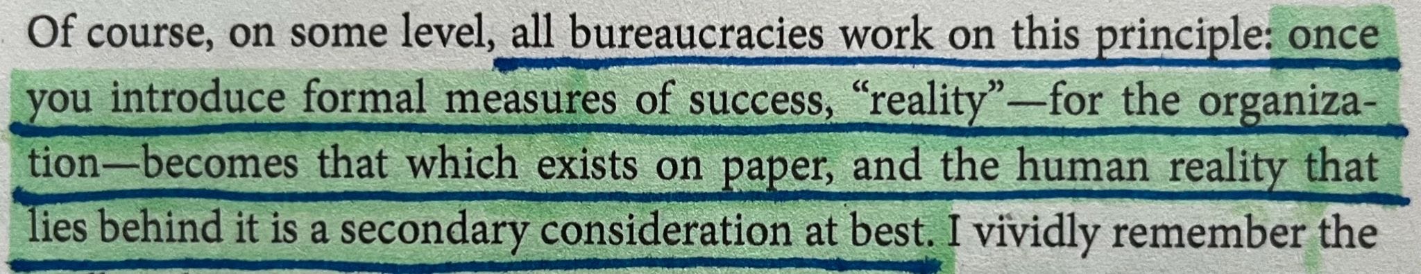 ‘When a measurement becomes a target, institutional environments are restructured so that they focus their resources and activities primarily on what “counts” to funders and governors.’ That is, from the moment of REF/TEF’s implementation, the university institution is transmogrified into an entity which, above all else, serves to meet those criteria. As Yale/LSE anthropology professor David Graeber articulates, what is ‘excellent’ becomes what is ‘excellent’ on the assessment sheet; reality, for the institution, is subordinated to the metrics by which it is judged:45