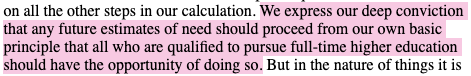 Reiterating the ‘44 Education Act’s call for higher education for ‘any persons … able and willing’ to benefit from it, the Robbins Report begins from an ideological commitment to providing higher education for ‘all who are qualified’:
